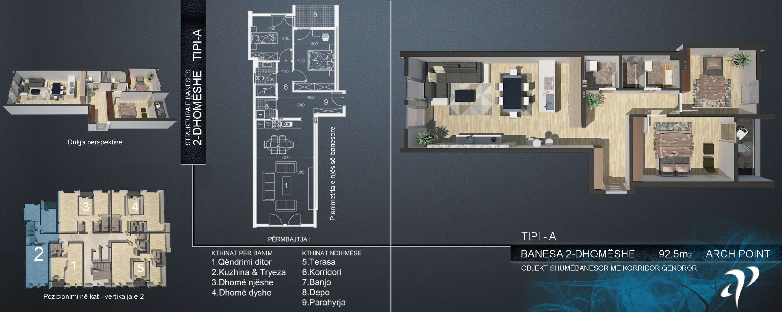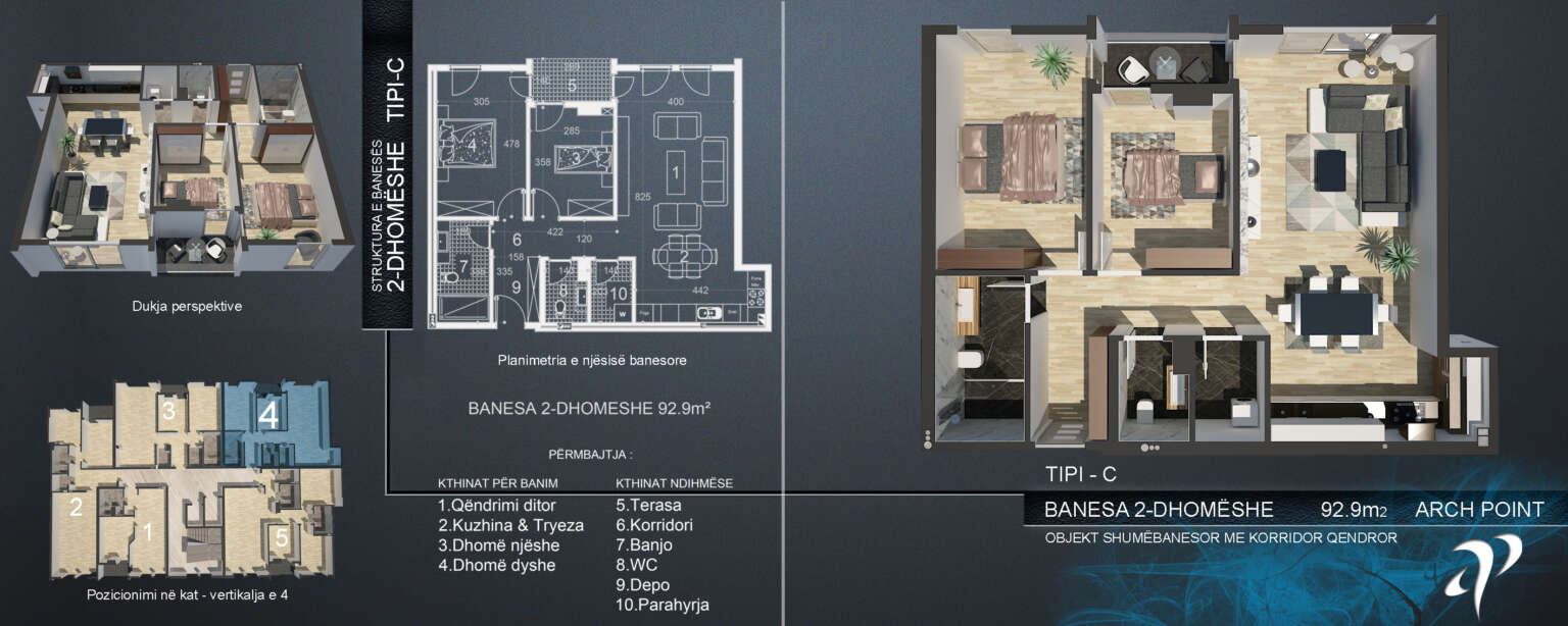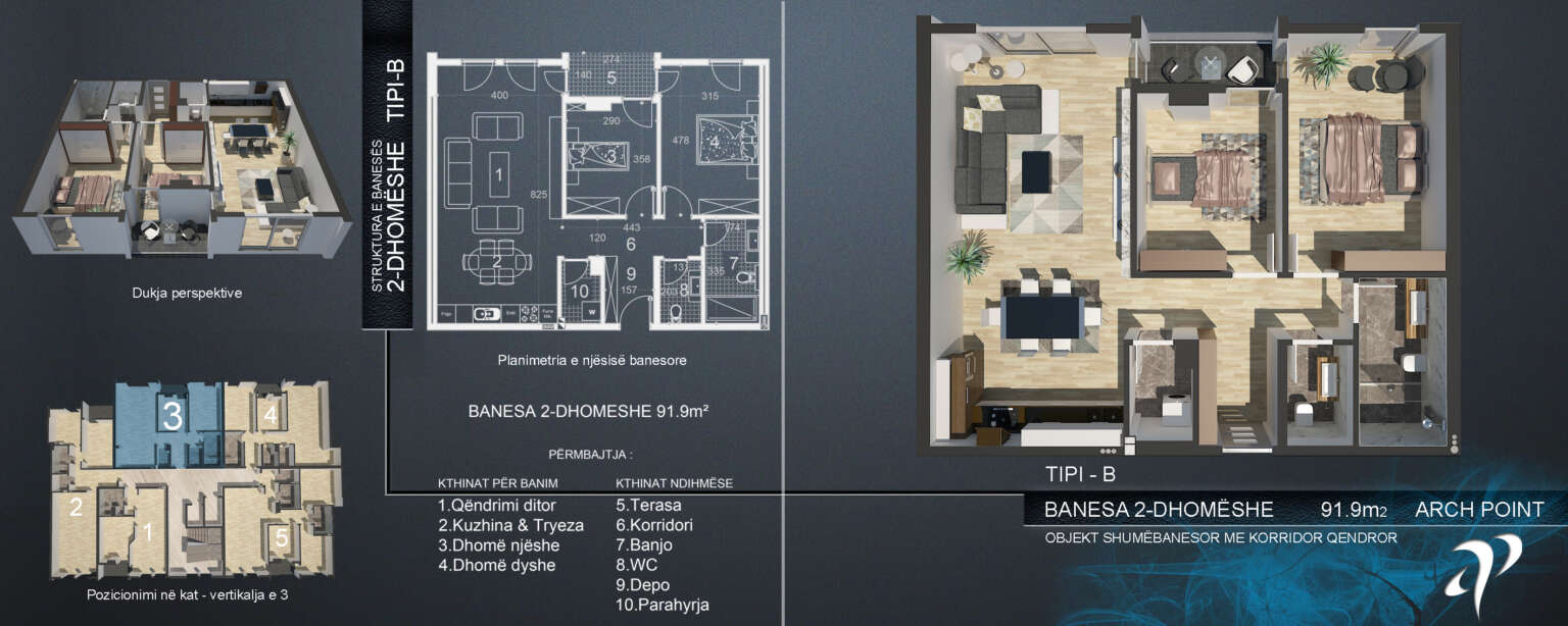 Arch Point është një kompleks bashkëkohor banimi i vendosur në Ferizaj, i ndërtuar me një vizion të përzierjes së dizajnit modern, rehatisë dhe praktikës. Komuniteti ynë ofron infrastrukturë me cilësi të lartë, mjedis të sigurt dhe hapësira të dizajnuara me kujdes që mbështesin një stil jetese të relaksuar dhe të këndshëm. Pavarësisht nëse jeni banor apo mysafir, Arch Point është i përkushtuar të ofrojë një mjedis mikpritës dhe të organizuar mirë për të gjithë.