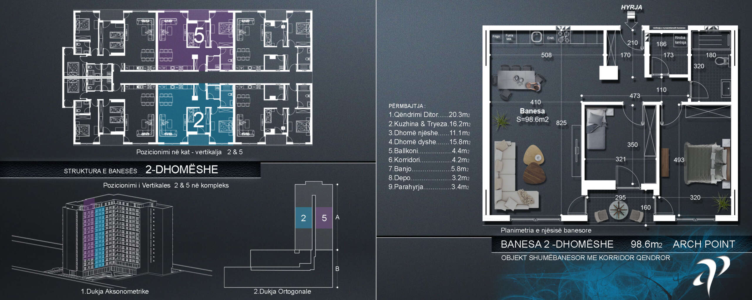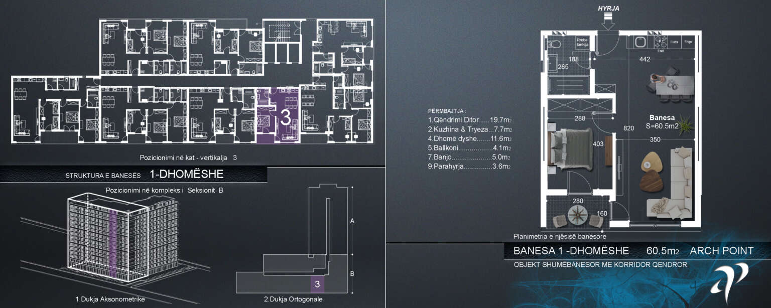Mirë se vini në Arch Point, një kompleks modern banimi në zemër të Ferizajt, i projektuar për të ofruar rehati, aksesueshmëri dhe jetesë të nivelit të lartë. Me infrastrukturë të planifikuar me kujdes, ambiente të sigurta dhe zona të përbashkëta të mirëmbajtura bukur, ne krijojmë një mjedis të ngrohtë dhe mikpritës për të gjithë banorët dhe vizitorët.